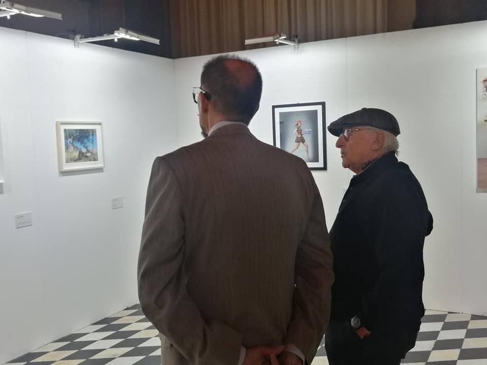 Nicola Fabbri e Nino Migliori mentre ammirano le opere in mostra