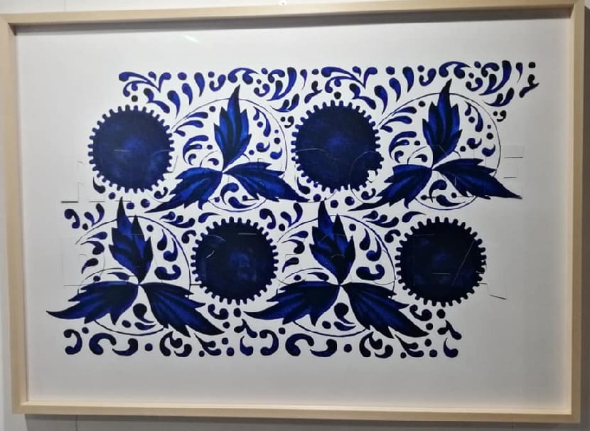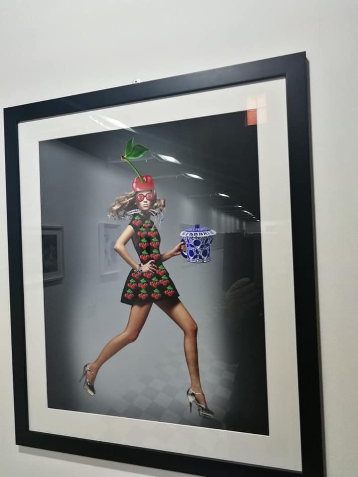 Molti lavori prendono spunto dal motivo bianco e blu che decora il vaso di Amarena Fabbri, icona e sinonimo di bontà scolpito nell’immaginario di generazioni, anche di quelle più giovani. Ogni opera, poi, ha in sé una narrazione fatta di ricordi personali e riflessioni sull’estetica contemporanea. Cui si unisce, in alcuni casi, un riconoscimento all’importanza della figura femminile attraverso la scelta di una donna come protagonista: a creare la famosa “marena con frutto”, del resto, fu Rachele Buriani, moglie del fondatore dell’azienda.