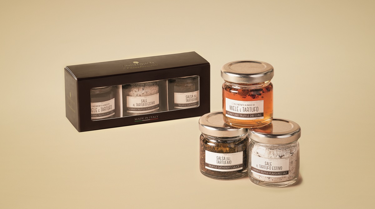 Raffinato e versatile, il tartufo è un’eccellenza italiana ed è sempre un’ottima idea come regalo. Soprattutto quando si va dal dolce al salato per scoprirne le sfumature in ogni piatto. Savini Tartufi, azienda toscana che da quattro generazioni si occupa di questo pregevole e pregiato prodotto, propone ad esempio una confezione di condimenti per tutte le occasioni, con la Salsa del Tartufaio, il Sale al Tartufo ed il Miele e Tartufo (prezzo: 18,50 €).