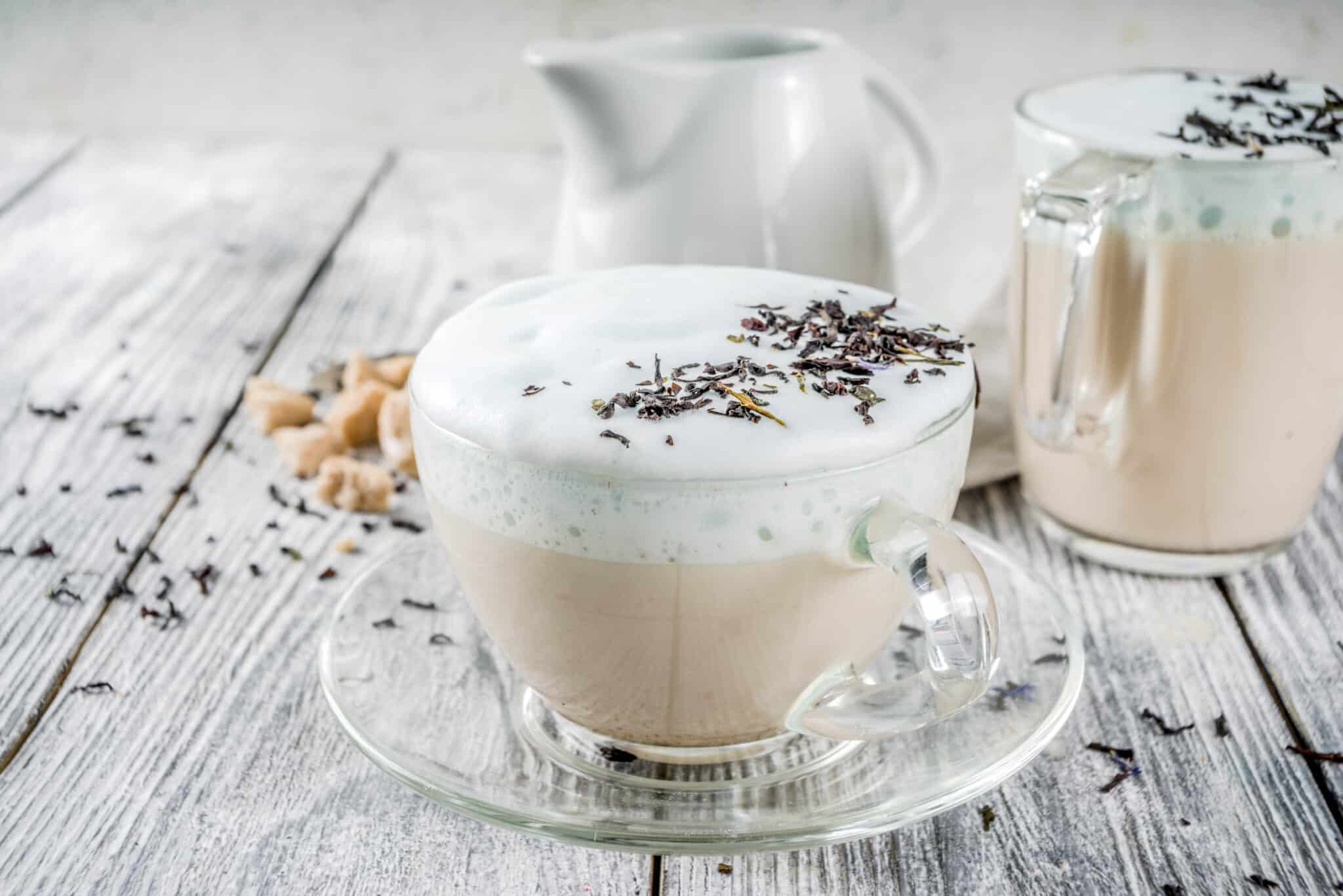 Puoi decorare il tuo London Fog con una stecca di cannella, oppure foglie di te o petali di lavanda come topping.