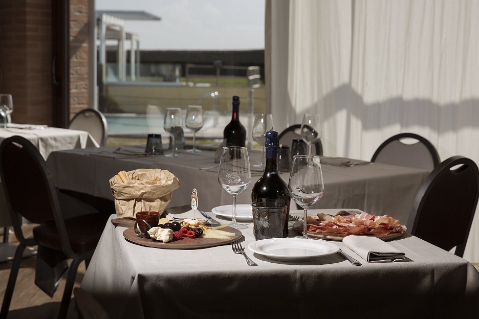 Tagliere di  Prosciutto di Parma del “Consorzio del Prosciutto di Parma”, servito con bastoncini di polenta fritta e crema di Parmigiano Reggiano 24 mesimillesimato Bertinelli.