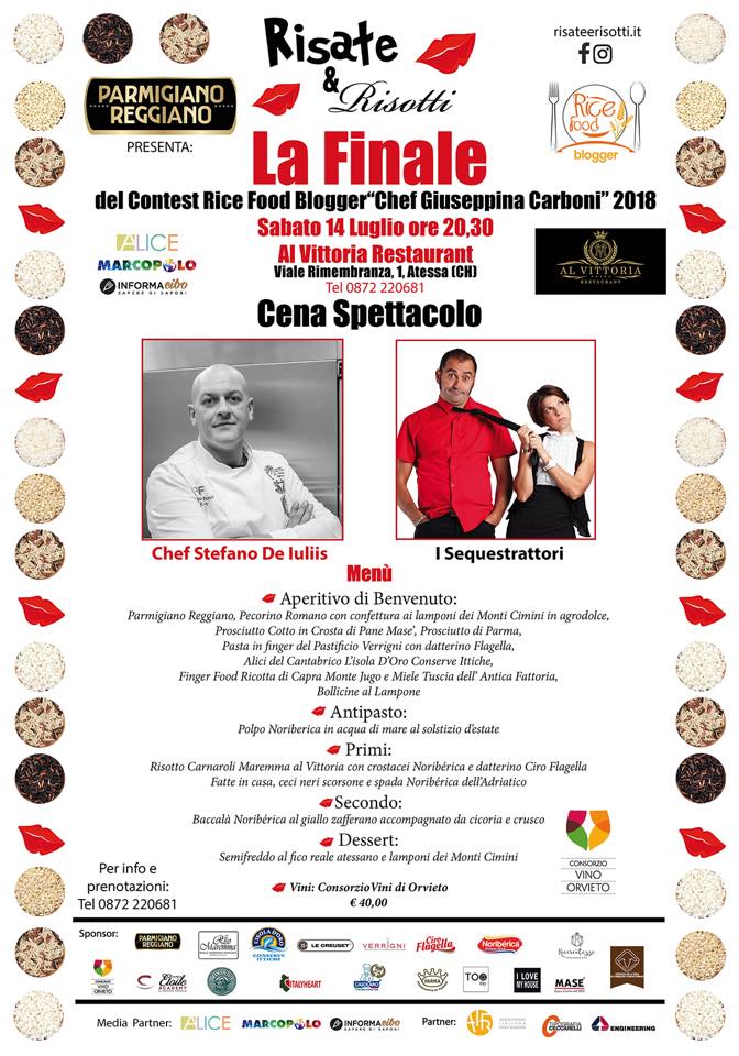Risate & Risotti ideata da Luca Puzzuoli sbarca ad Atessa (Ch) il 14 luglio per la finale del Contest Rice Food Blogger “Chef Giuseppina Carboni”