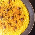 Quando il riso è pronto manteco con il burro e il parmigiano e spolvero con il pepe nero macinato al momento.