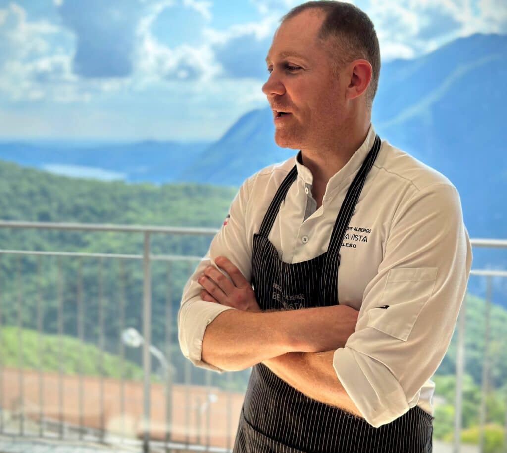 È qui, affacciato su un panorama stupendo da cui probabilmente prende il nome, che nasce il ristorante e hotel Bellavista. Un’istituzione nel paese, che oggi ha acquisito una marcia gourmet in più grazie alo chef Paolo Longoni (foto in alto), che ha scelto dopo esperienze internazionali di investire la sua esperienza nel locale di famiglia.