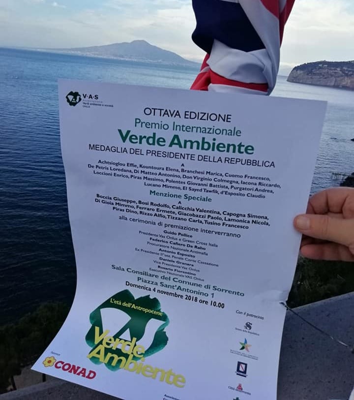 Si è concluso a Sorrento nel segno del successo, superando ogni aspettativa di presenze, il “Premio Internazionale di Ecologia Verde Ambiente 2018”, organizzato dalla storica Associazione ambientalista VAS –Verdi Ambiente e Società onlus, guidata da Guido Pollice.
