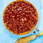 6. Con le strisce di pasta rimaste decorate la superficie della torta e spennellatele con uovo sbattuto.