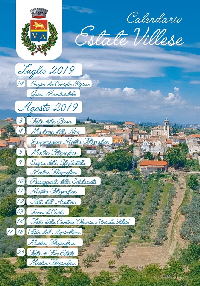 Il 17 e il 18 agosto ci sarà la festa dell’Agricoltura dove il mondo rurale si rirtova per discutere e far festa. E poi tante altre iniziative come da Calendario dell’Estate Villese 2019.