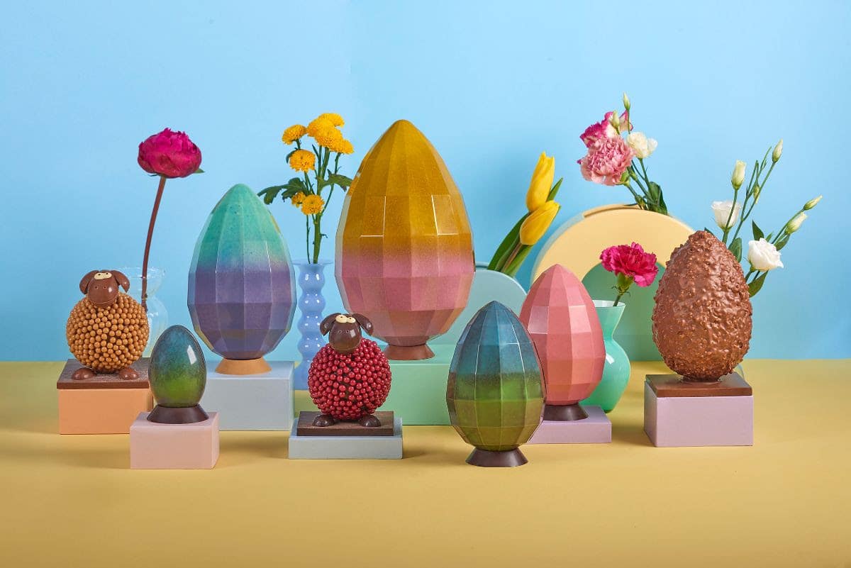 Ci sono le uova tradizionali ma soprattutto quelle creative: tra le proposte 2025 di Solbiati Cioccolato, laboratorio artigianale presente a Milano e a Brescia, ci sono uova che diventano pecore, l’Uovo Nido con un guscio di cioccolato al latte o fondente e un coniglietto all’interno, l’Uovo Fabergè, con decorazione manuale e l’uovo Chi ha visto Roger Rabbit, una base di cioccolato che sorregge un uovo a pois e delle orecchie di coniglio.