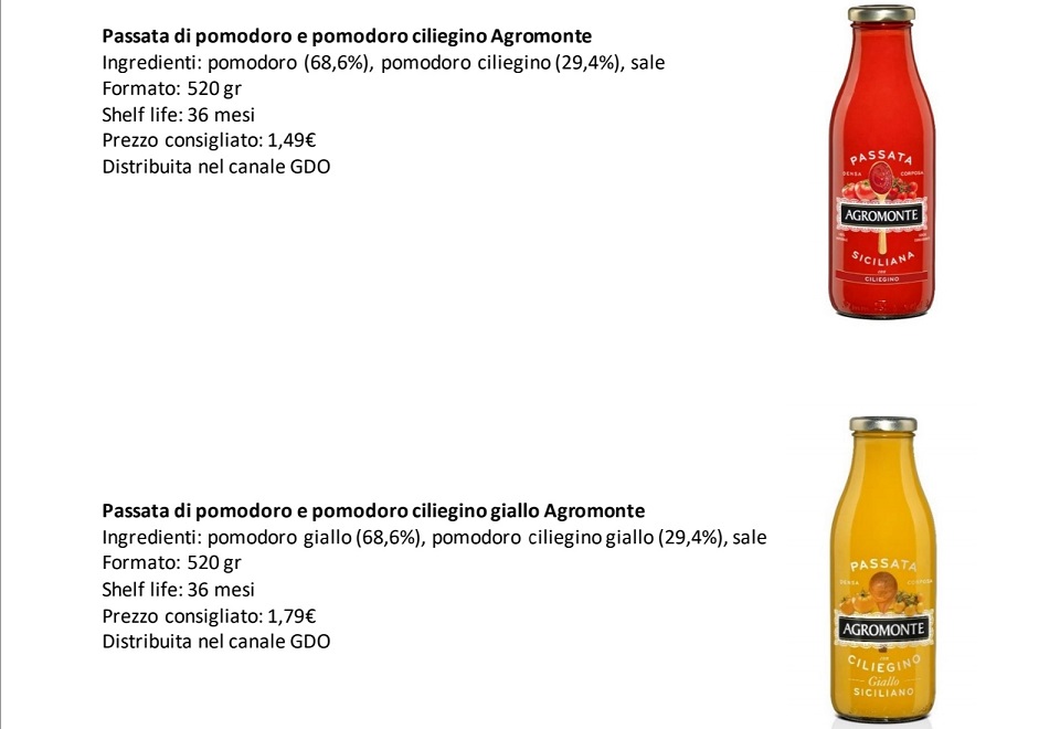 Schede prodotto: Passata di pomodoro e pomodoro ciliegino Agromonte e Passata di pomodoro e pomodoro ciliegino giallo Agromonte