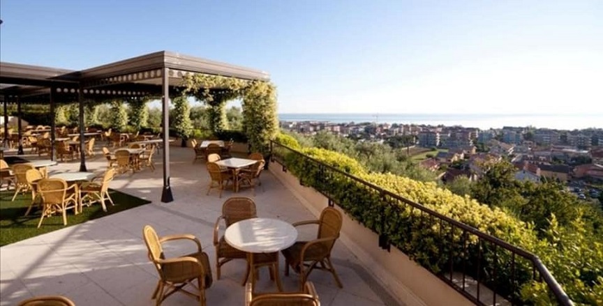 Tutti gli spazi sono ampi e ben curati, come le camere, alcune delle quali godono del meraviglioso affaccio sul vasto giardino fatto di pini e ulivi secolari. Panoramica la terrazza affacciata sul mare con la piscina scoperta che, d’estate, è luogo di ritrovo per incantevoli colazioni o aperitivi al tramonto. L’hotel è dotato di un elegante Centro Benessere Linfa, un ambiente riservato ed esclusivo che permette di allontanarsi totalmente dallo stress quotidiano e riacquistare l’equilibrio tra corpo e mente.