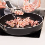 Aggiungere il guanciale a una padella ben calda senza l'aggiunta di grassi, continua la cottura a fiamma media fino a tostarlo